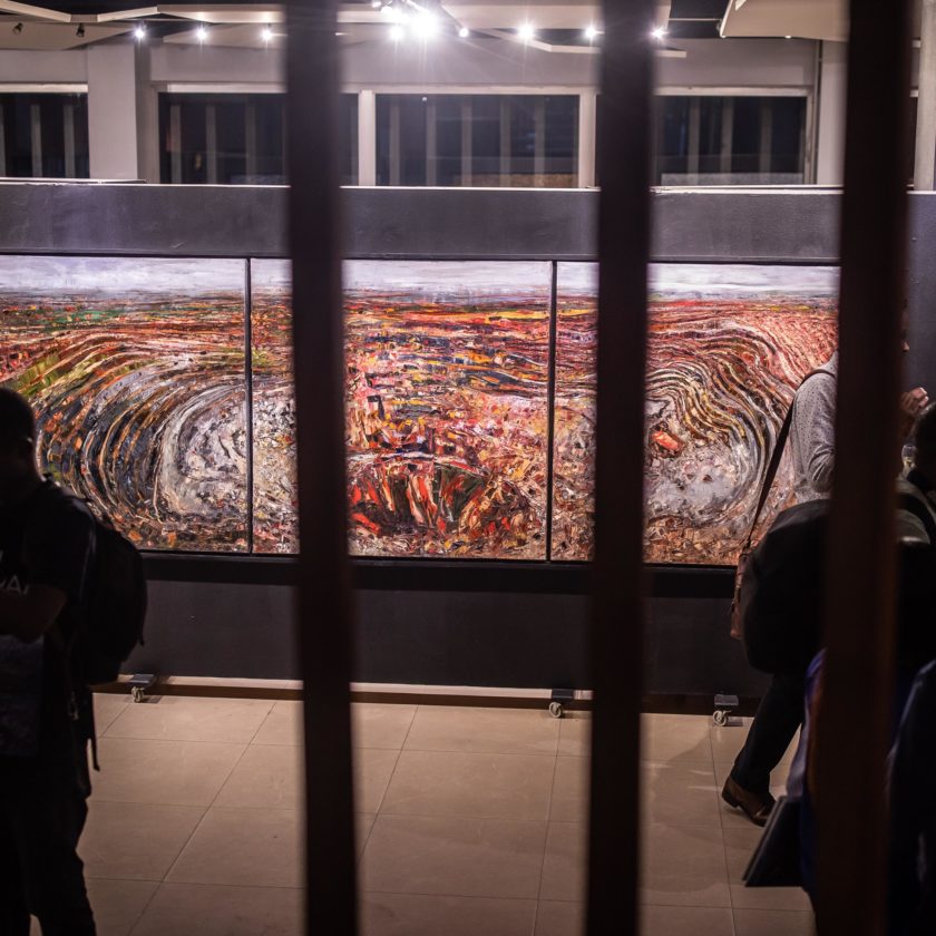 Cette exposition présentée en séries consacre une large palette de réalités déployées par l’expression cadencée des couleurs et la force de la matérialité. De « Terrain de jeux », triptyque qui dénonce du marchandage agressif de l’homme ignoré pour des intérêts matériels, à « Charnier des innocents », véritable plaidoyer pour les victimes des guerres en RDC en passant par « Présence-Absence« , plongée à la méditation et « Vibrations cosmiques« , véritable culte à l’Omnipotence, l’artiste Henri Kalama Akulez fait résonner les frémissements de l’âme invitant le public à une communion d’esprit. Au-delà de son langage de sentiment, « Abstraire » interpelle et rappelle à la responsabilité.