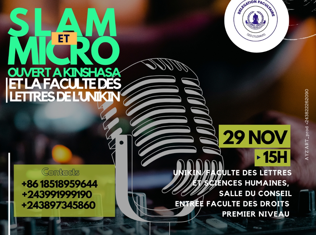 Pour que le slam vive longtemps et explore nos émotions à jamais. Après la grande prestation le 28 septembre 2024 au Centre culturel Têtra, Slam & Micro Ouvert va s’exporter à la faculté des Lettres et Sciences Humaines de l’Université de Kinshasa le vendredi 29 novembre 2024.
