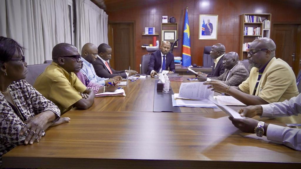 Les représentants de la délégation syndicale et intersyndicale du Réseau National de Télécommunications par Satellite –RENATELSAT-, ont été reçus le lundi 27 mars 2023 par le ministre de la communication et médias, Patrick Muyaya dans son cabinet de travail.