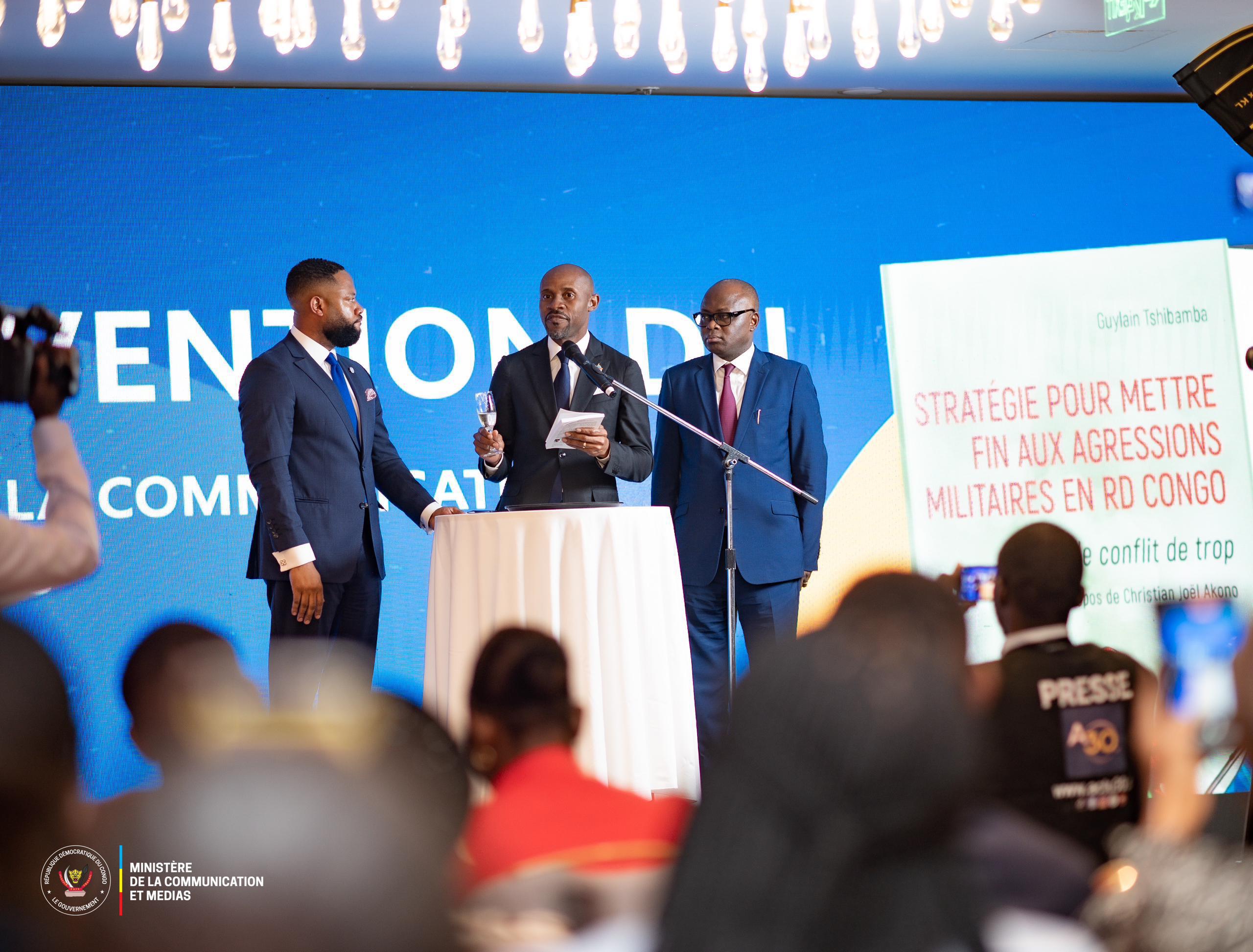 Le ministre de la Communication et des Médias, Patrick Muyaya, a procédé le lundi 7 juillet 2025, à l’hôtel Hilton de Kinshasa, au vernissage du livre intitulé “Stratégies pour mettre fin aux agressions militaire en Rd-Congo. M23 : conflit de trop”, écrit par le journaliste rd-congolais Guylain Tshibamba.